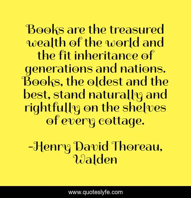 "Henry David Thoreau, Walden Quotes." Quoteslyfe.com, 2025. Mon. 08 Dec. 2025. <https://www.quoteslyfe.com/quote/Books-are-the-treasured-wealth-of-the-43708>.