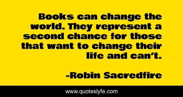 This page presents the quote "Books can change the world. They represent a second chance for those that want to change their life and can’t.". Author of this quote is Robin Sacredfire. This quote is about books, writers, authors,.