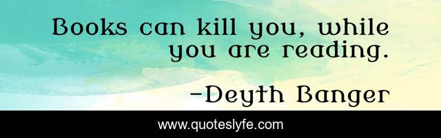 This page presents the quote "Books can kill you, while you are reading.". Author of this quote is Deyth Banger. This quote is about while, books, kill, can, reading,.