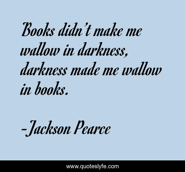 This page presents the quote "Books didn’t make me wallow in darkness, darkness made me wallow in books.". Author of this quote is Jackson Pearce. This quote is about enthusiasm, teens, books, reading, inspirational,.