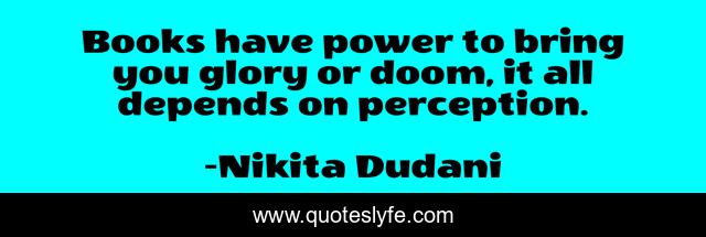 This page presents the quote "Books have power to bring you glory or doom, it all depends on perception.". Author of this quote is Nikita Dudani. This quote is about literature, plays, novels, writers, books, poems,.
