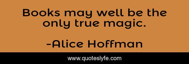 This page presents the quote "Books may well be the only true magic.". Author of this quote is Alice Hoffman. .