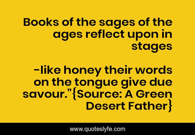 "like honey their words on the tongue give due savour.”{Source: A Green Desert Father} Quotes." Quoteslyfe.com, 2025. Fri. 05 Dec. 2025. <https://www.quoteslyfe.com/quote/Books-of-the-sages-of-the-ages-164214>.
