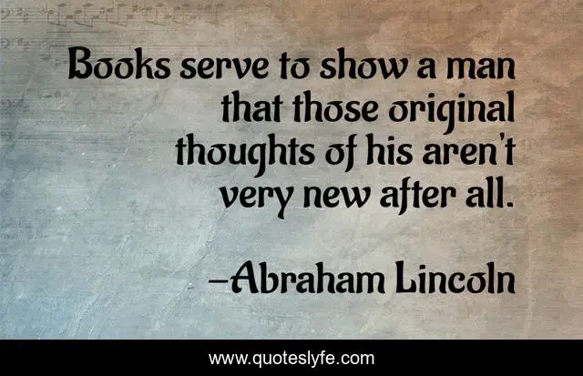 This page presents the quote "Books serve to show a man that those original thoughts of his aren't very new after all.". Author of this quote is Abraham Lincoln. This quote is about originality, unique, books,.
