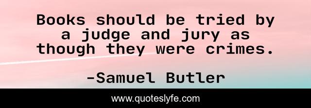 This page presents the quote "Books should be tried by a judge and jury as though they were crimes.". Author of this quote is Samuel Butler. This quote is about books, reading,.