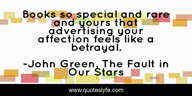This page presents the quote "Books so special and rare and yours that advertising your affection feels like a betrayal.". Author of this quote is John Green, The Fault in Our Stars. .