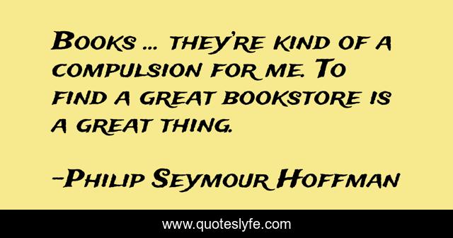 This page presents the quote "Books … they’re kind of a compulsion for me. To find a great bookstore is a great thing.". Author of this quote is Philip Seymour Hoffman. This quote is about enthusiasm, bookstore, books, reading, inspirational,.