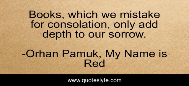 This page presents the quote "Books, which we mistake for consolation, only add depth to our sorrow.". Author of this quote is Orhan Pamuk, My Name is Red. This quote is about sorrow, insight, books,.