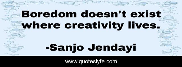 This page presents the quote "Boredom doesn't exist where creativity lives.". Author of this quote is Sanjo Jendayi. This quote is about creativity, creative, does-not-exist, exist, boredom, bored,.