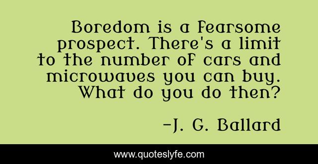 This page presents the quote "Boredom is a fearsome prospect. There's a limit to the number of cars and microwaves you can buy. What do you do then?". Author of this quote is J. G. Ballard. This quote is about limit, boredom,.