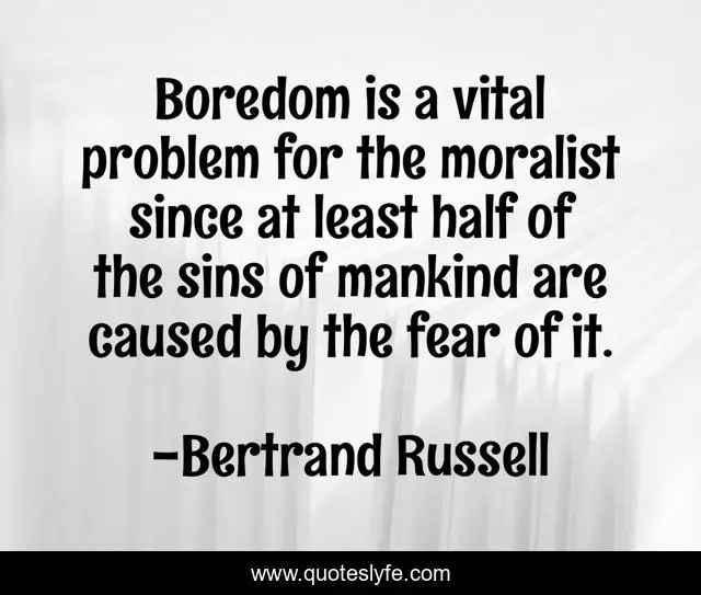 This page presents the quote "Boredom is a vital problem for the moralist since at least half of the sins of mankind are caused by the fear of it.". Author of this quote is Bertrand Russell. This quote is about boring, days,.