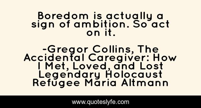 This page presents the quote "Boredom is actually a sign of ambition. So act on it.". Author of this quote is Gregor Collins, The Accidental Caregiver: How I Met, Loved, and Lost Legendary Holocaust Refugee Maria Altmann. .