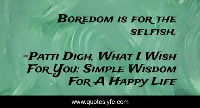"Patti Digh, What I Wish For You: Simple Wisdom For A Happy Life Quotes." Quoteslyfe.com, 2025. Sat. 06 Dec. 2025. <https://www.quoteslyfe.com/quote/Boredom-is-for-the-selfish-240443>.