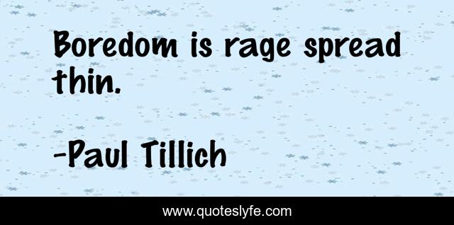 "Paul Tillich Quotes." Quoteslyfe.com, 2025. Mon. 08 Dec. 2025. <https://www.quoteslyfe.com/quote/Boredom-is-rage-spread-thin-260905>.