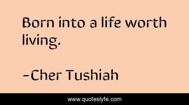 This page presents the quote "Born into a life worth living.". Author of this quote is Cher Tushiah. .