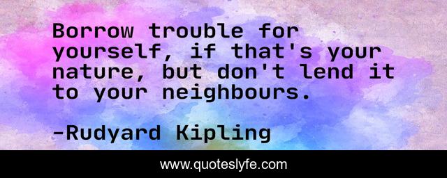 This page presents the quote "Borrow trouble for yourself, if that's your nature, but don't lend it to your neighbours.". Author of this quote is Rudyard Kipling. This quote is about trouble, yourself,.