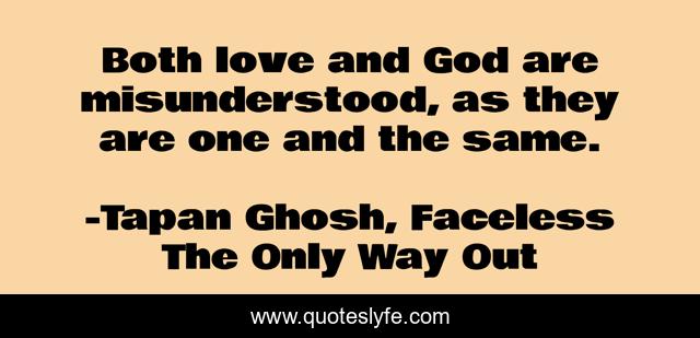 This page presents the quote "Both love and God are misunderstood, as they are one and the same.". Author of this quote is Tapan Ghosh, Faceless The Only Way Out. This quote is about love, god-s-love, affection,.