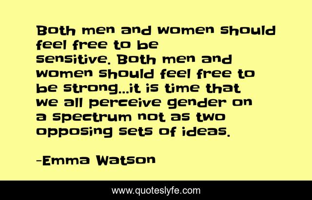 This page presents the quote "Both men and women should feel free to be sensitive. Both men and women should feel free to be strong…it is time that we all perceive gender on a spectrum not as two opposing sets of ideas.". Author of this quote is Emma Watson. This quote is about sensitive, gender-equality, men-and-women, strong,.