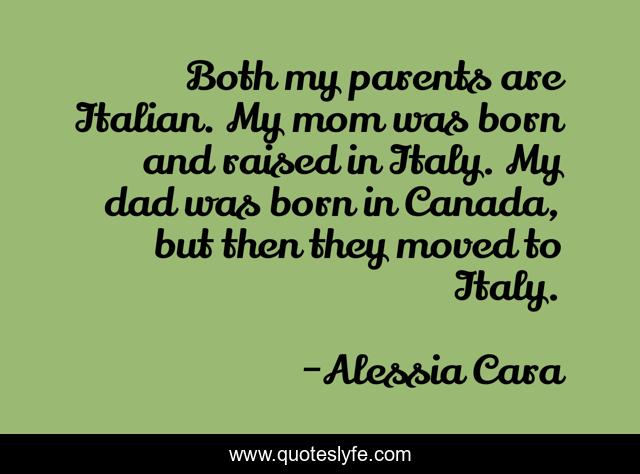 This page presents the quote "Both my parents are Italian. My mom was born and raised in Italy. My dad was born in Canada, but then they moved to Italy.". Author of this quote is Alessia Cara. This quote is about canada, born, parents,.