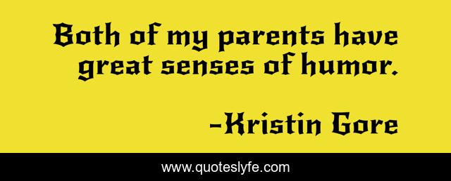 This page presents the quote "Both of my parents have great senses of humor.". Author of this quote is Kristin Gore. This quote is about great, senses, parents,.