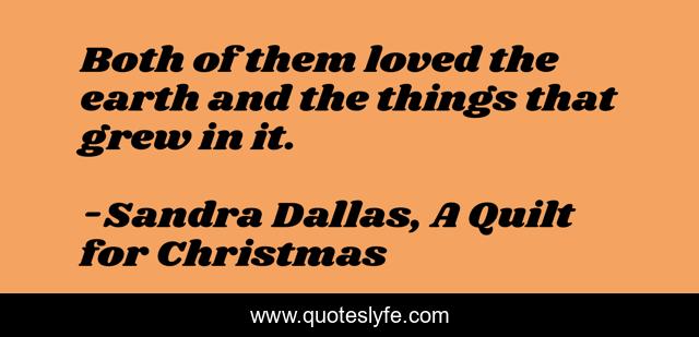 This page presents the quote "Both of them loved the earth and the things that grew in it.". Author of this quote is Sandra Dallas, A Quilt for Christmas. This quote is about earth, farming, gardens,.