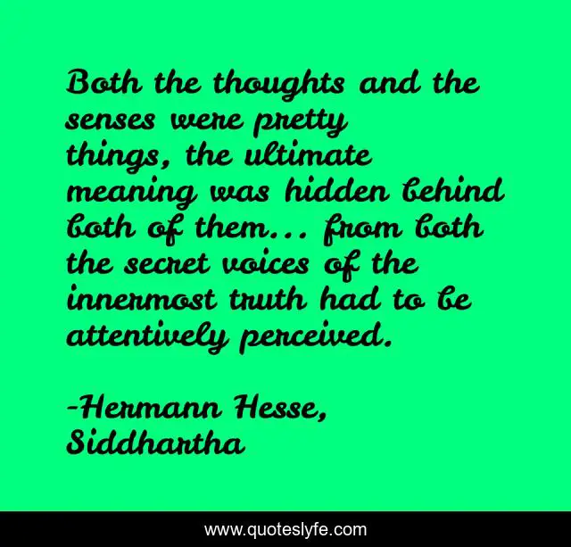 Both the thoughts and the senses were pretty things, the ultimate meaning was hidden behind both of them... from both the secret voices of the innermost truth had to be attentively perceived.