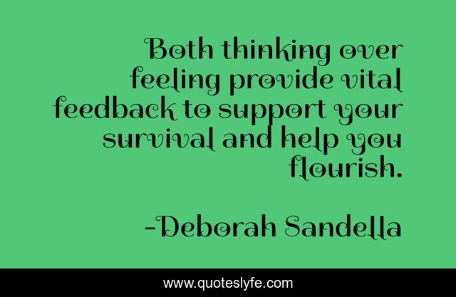 This page presents the quote "Both thinking over feeling provide vital feedback to support your survival and help you flourish.". Author of this quote is Deborah Sandella. This quote is about wellness, self-awareness, self-improvement,.