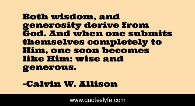 This page presents the quote "Both wisdom, and generosity derive from God. And when one submits themselves completely to Him, one soon becomes like Him: wise and generous.". Author of this quote is Calvin W. Allison. .