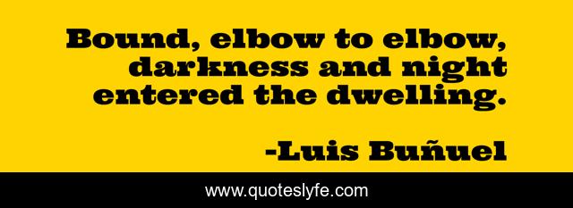 This page presents the quote "Bound, elbow to elbow, darkness and night entered the dwelling.". Author of this quote is Luis Buñuel. This quote is about darkness, night,.
