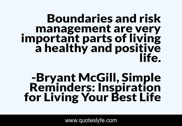 "Bryant McGill, Simple Reminders: Inspiration for Living Your Best Life Quotes." Quoteslyfe.com, 2025. Mon. 08 Dec. 2025. <https://www.quoteslyfe.com/quote/Boundaries-and-risk-management-are-very-important-177047>.