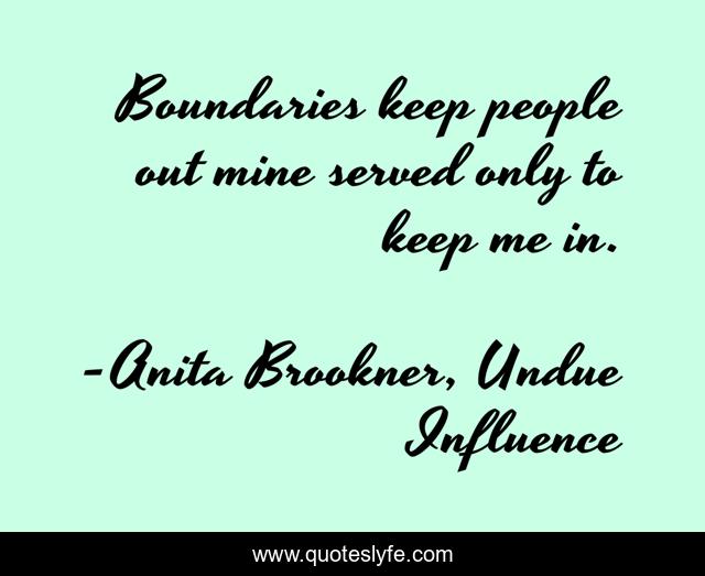 "Anita Brookner, Undue Influence Quotes." Quoteslyfe.com, 2025. Fri. 05 Dec. 2025. <https://www.quoteslyfe.com/quote/Boundaries-keep-people-out-mine-served-only-35761>.