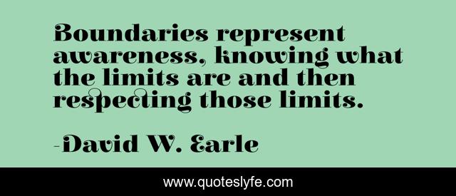 This page presents the quote "Boundaries represent awareness, knowing what the limits are and then respecting those limits.". Author of this quote is David W. Earle. This quote is about love, family, chaos, boundaries, famlies, bounadaries, family-drama, family-relationships, affection,.