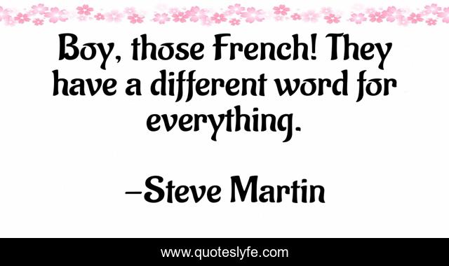 "Steve Martin Quotes." Quoteslyfe.com, 2025. Sat. 06 Dec. 2025. <https://www.quoteslyfe.com/quote/Boy-those-French-They-have-a-different-5838>.