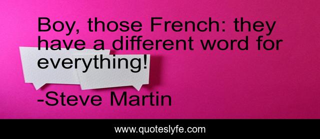 "Steve Martin Quotes." Quoteslyfe.com, 2025. Mon. 08 Dec. 2025. <https://www.quoteslyfe.com/quote/Boy-those-French-they-have-a-different-316806>.