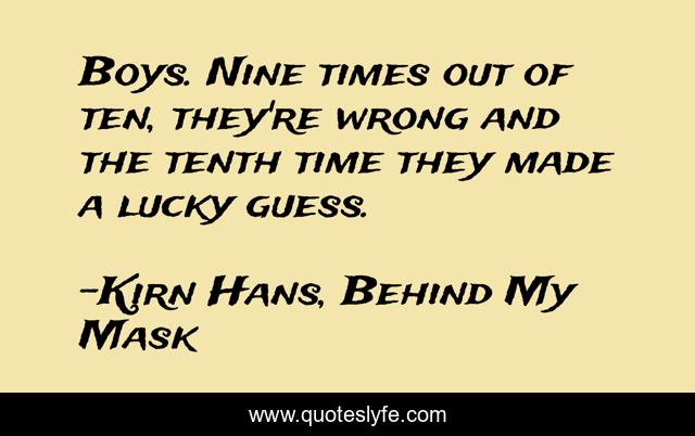 "Kirn Hans, Behind My Mask Quotes." Quoteslyfe.com, 2025. Sat. 06 Dec. 2025. <https://www.quoteslyfe.com/quote/Boys-Nine-times-out-of-ten-they-257315>.