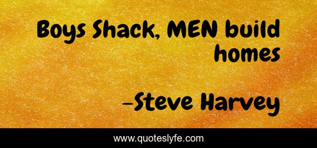 "Steve Harvey Quotes." Quoteslyfe.com, 2025. Mon. 08 Dec. 2025. <https://www.quoteslyfe.com/quote/Boys-Shack-MEN-build-homes-127353>.