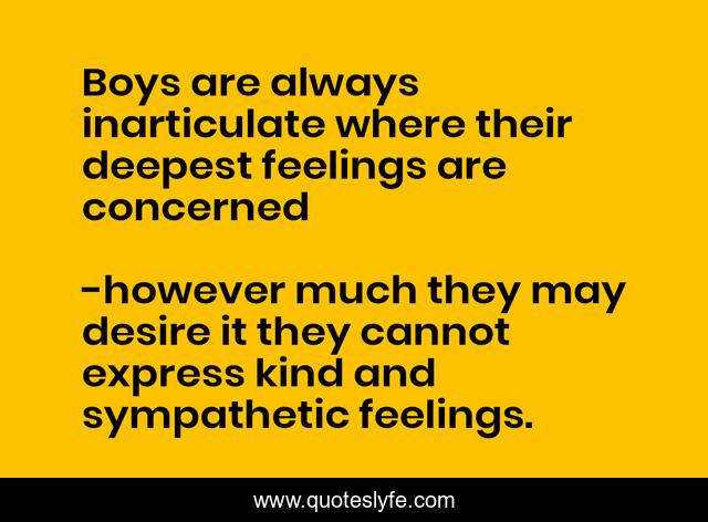 "however much they may desire it they cannot express kind and sympathetic feelings. Quotes." Quoteslyfe.com, 2025. Sun. 07 Dec. 2025. <https://www.quoteslyfe.com/quote/Boys-are-always-inarticulate-where-their-deepest-257276>.