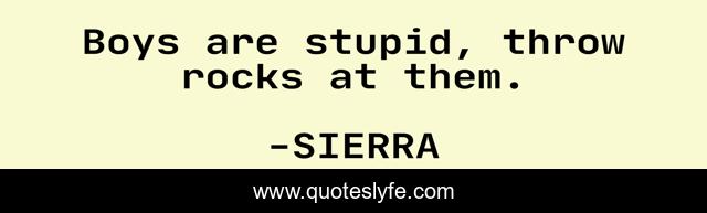 This page presents the quote "Boys are stupid, throw rocks at them.". Author of this quote is SIERRA. This quote is about boys, stupid, humor,.