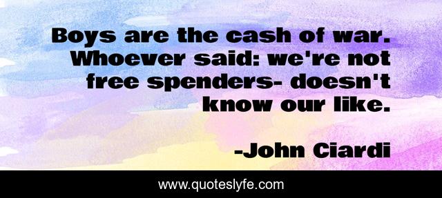 This page presents the quote "Boys are the cash of war. Whoever said: we're not free spenders- doesn't know our like.". Author of this quote is John Ciardi. .