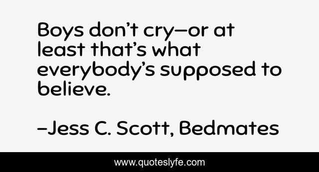 "Jess C. Scott, Bedmates Quotes." Quoteslyfe.com, 2025. Fri. 05 Dec. 2025. <https://www.quoteslyfe.com/quote/Boys-don-t-cry-or-at-least-231203>.