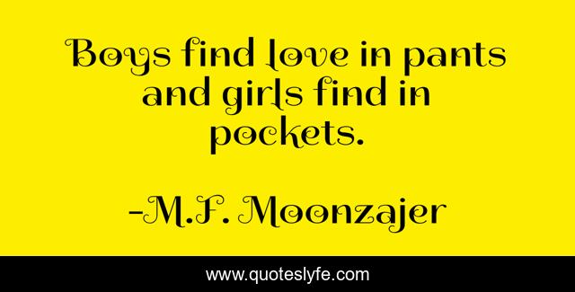 "M.F. Moonzajer Quotes." Quoteslyfe.com, 2025. Tue. 09 Dec. 2025. <https://www.quoteslyfe.com/quote/Boys-find-love-in-pants-and-girls-225796>.