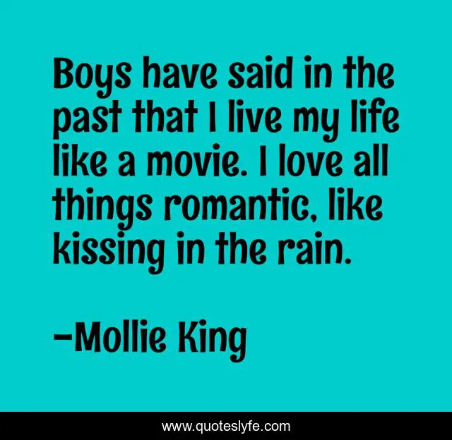 This page presents the quote "Boys have said in the past that I live my life like a movie. I love all things romantic, like kissing in the rain.". Author of this quote is Mollie King. This quote is about life, love, rain, affection,.