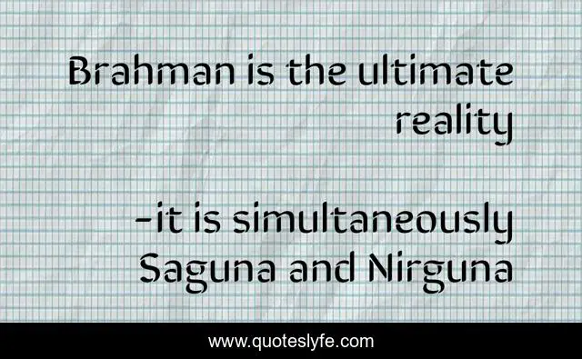 "it is simultaneously Saguna and Nirguna Quotes." Quoteslyfe.com, 2025. Sat. 06 Dec. 2025. <https://www.quoteslyfe.com/quote/Brahman-is-the-ultimate-reality-8172>.