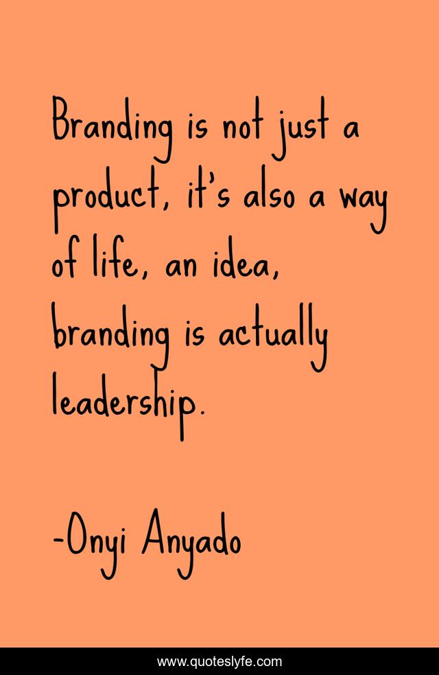 This page presents the quote "Branding is not just a product, it's also a way of life, an idea, branding is actually leadership.". Author of this quote is Onyi Anyado. This quote is about branding, entrepreneurship, entrepreneur, leadership, onyi-anyado, the-doorway-to-distinction,.