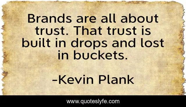 This page presents the quote "Brands are all about trust. That trust is built in drops and lost in buckets.". Author of this quote is Kevin Plank. This quote is about drops, built, lost,.