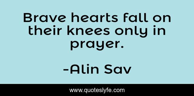 This page presents the quote "Brave hearts fall on their knees only in prayer.". Author of this quote is Alin Sav. This quote is about positive, confidence, motivational, optimistic,.