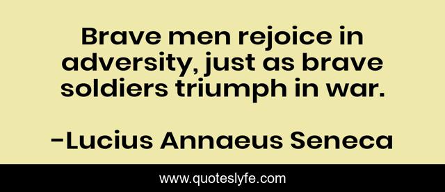 This page presents the quote "Brave men rejoice in adversity, just as brave soldiers triumph in war.". Author of this quote is Lucius Annaeus Seneca. This quote is about men, brave, adversity,.