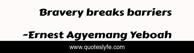 "Ernest Agyemang Yeboah Quotes." Quoteslyfe.com, 2025. Sat. 06 Dec. 2025. <https://www.quoteslyfe.com/quote/Bravery-breaks-barriers-202814>.