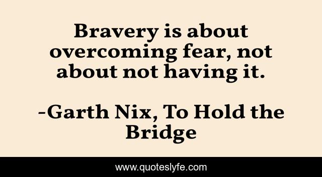 "Garth Nix, To Hold the Bridge Quotes." Quoteslyfe.com, 2025. Sun. 07 Dec. 2025. <https://www.quoteslyfe.com/quote/Bravery-is-about-overcoming-fear-not-about-202829>.