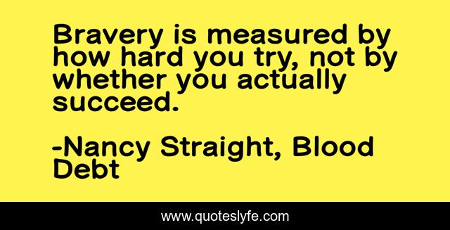"Nancy Straight, Blood Debt Quotes." Quoteslyfe.com, 2025. Fri. 05 Dec. 2025. <https://www.quoteslyfe.com/quote/Bravery-is-measured-by-how-hard-you-202984>.